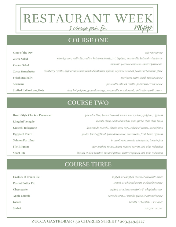 Zucca Gastrobar Website: https://zuccagastrobar.com/ Phone: (203) 349-5227 Click to Make Reservations Click to Make Reservations <<Click to return to the Westport Restaurant Week page
